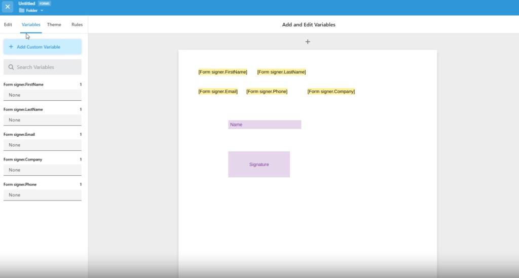 Forms just got more dynamic. Now, you can insert variable fields, like recipient name, email, or company name, directly into your form content.