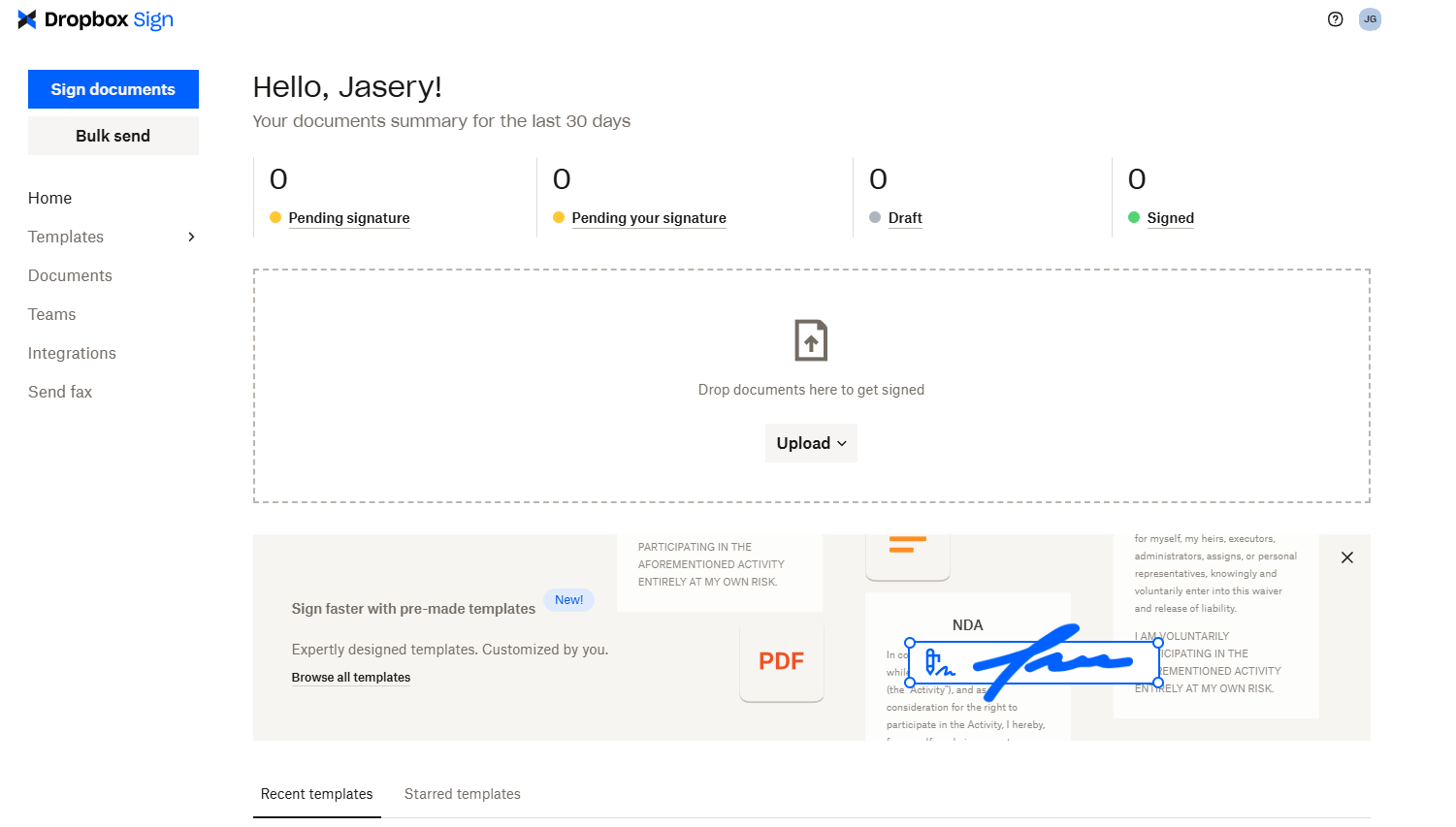 SignNow made it easy to get started. It immediately assumed I wanted to send a document and even generated a signature automatically, which removed a few steps.