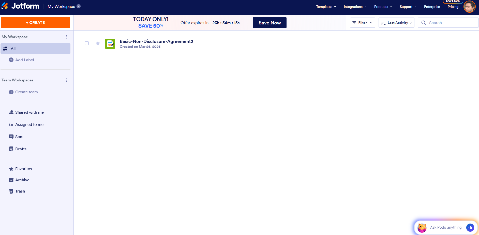 Jotform Sign made it easy to start building documents right away, even before creating an account. The form-building experience is smooth, and field detection works well.