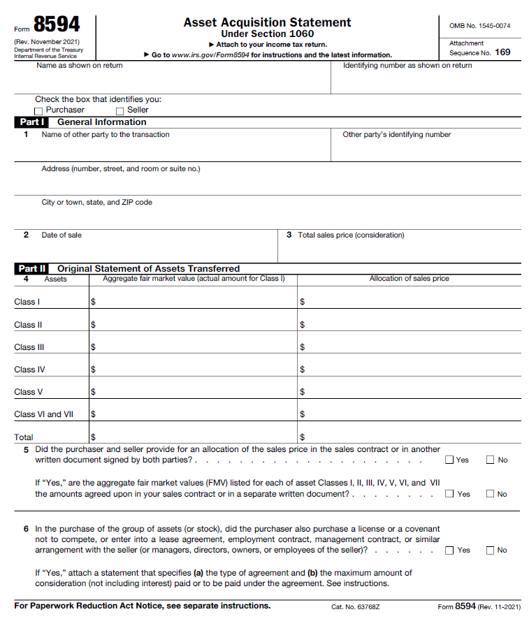 Are you looking to acquire a business or sell your own? Then you need to know about form 8594 or the Asset Acquisition Statement. It's a document used by the Internal Revenue Service (IRS) to report the purchase price allocation in a business sale.