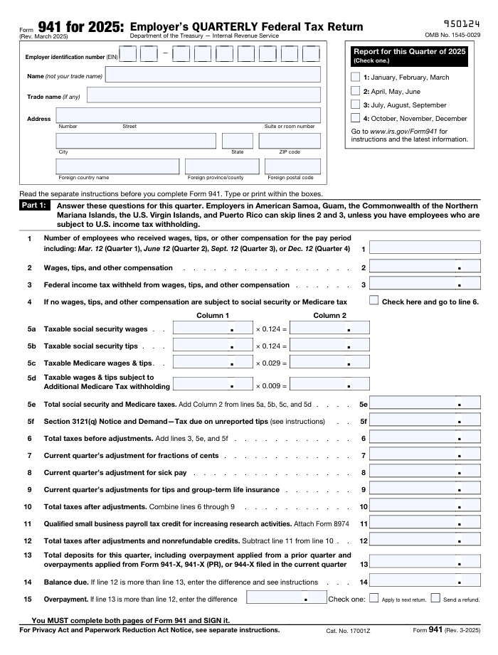 - File on time – Make sure you file Form 941 on time to avoid penalties and interest charges. The filing deadline is usually around the third week of April.