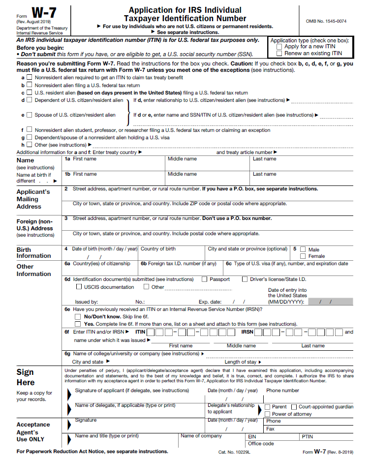 How to Write Form W7 Application for IRS Individual Taxpayer Identification Number