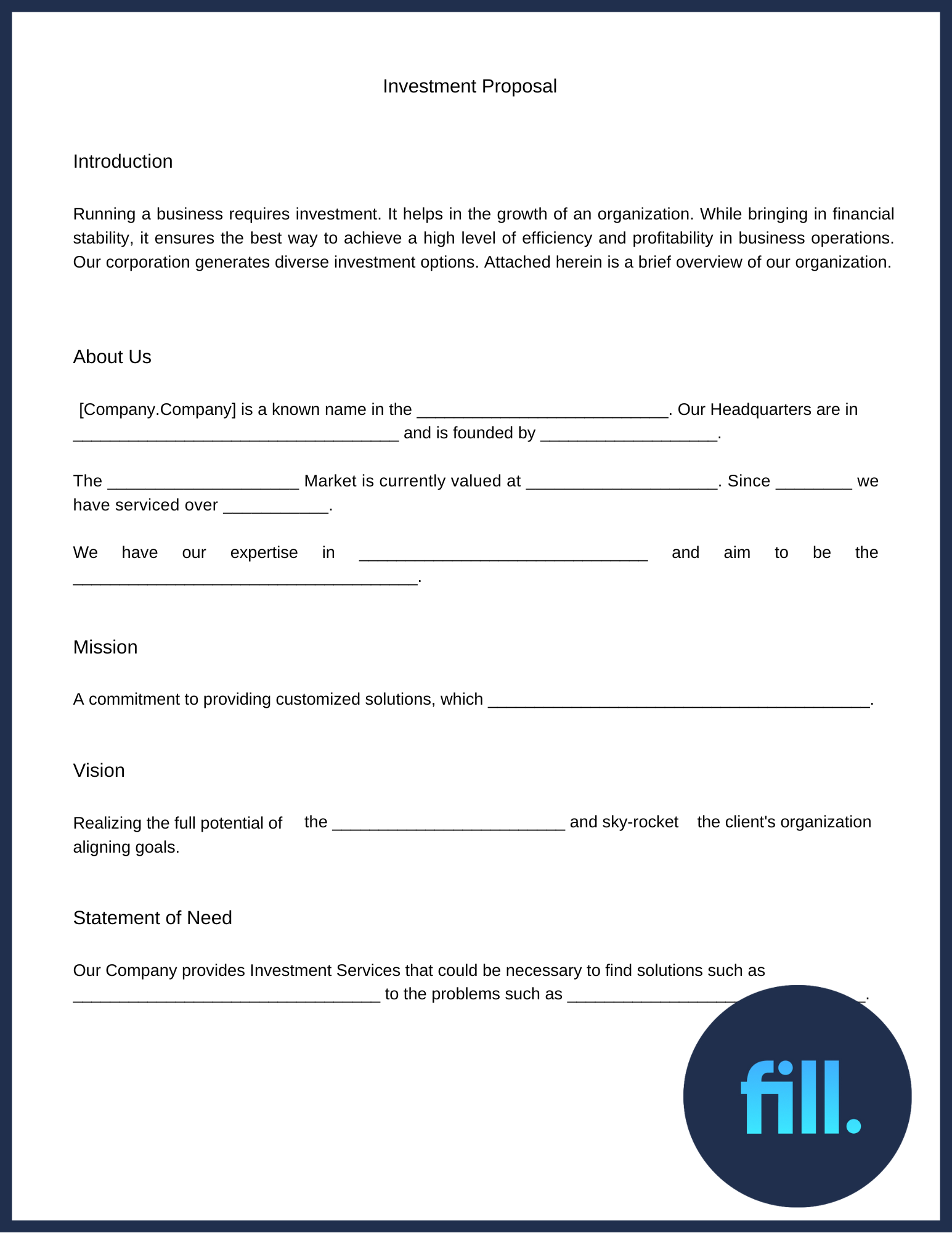 Use Fill for Your Investment Proposal