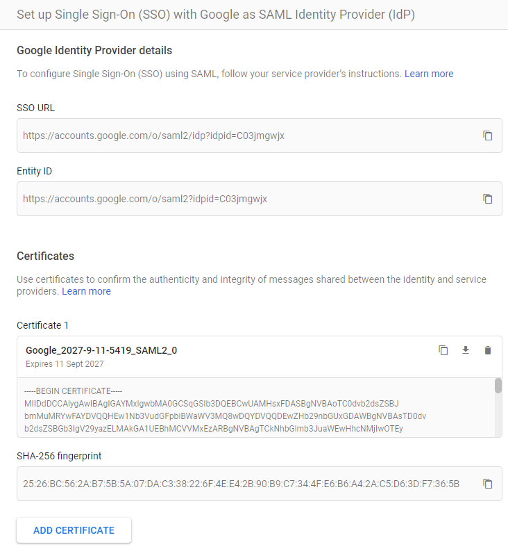 - Paste the Login URL and the X.509 Certificate retrieved from the IdP.