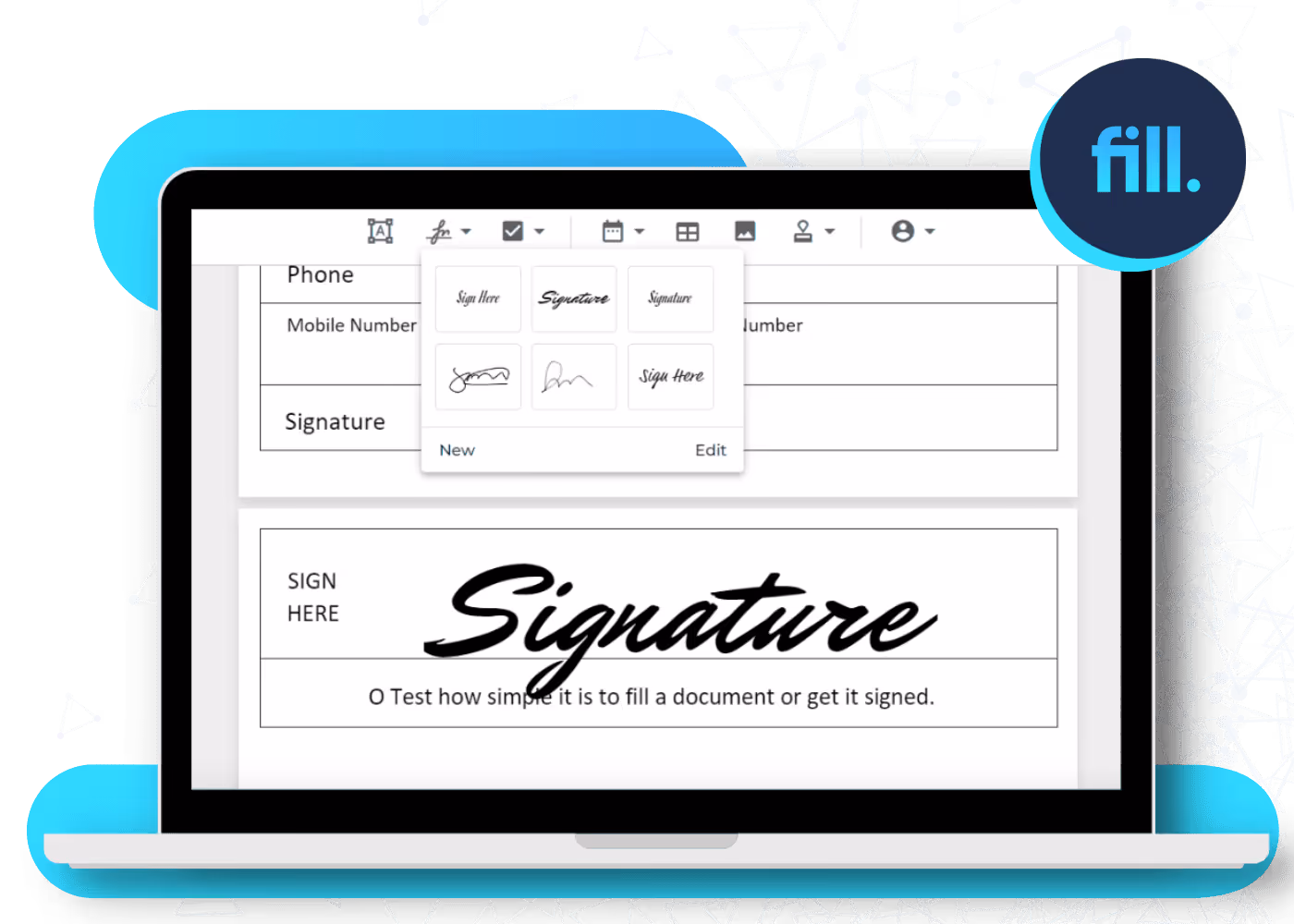 Fill’s electronic signature app for Windows lets you create signatures and sign documents on your laptop or desktop computer. It takes the hassle out of document signing so you can carry out transactions quickly and securely.