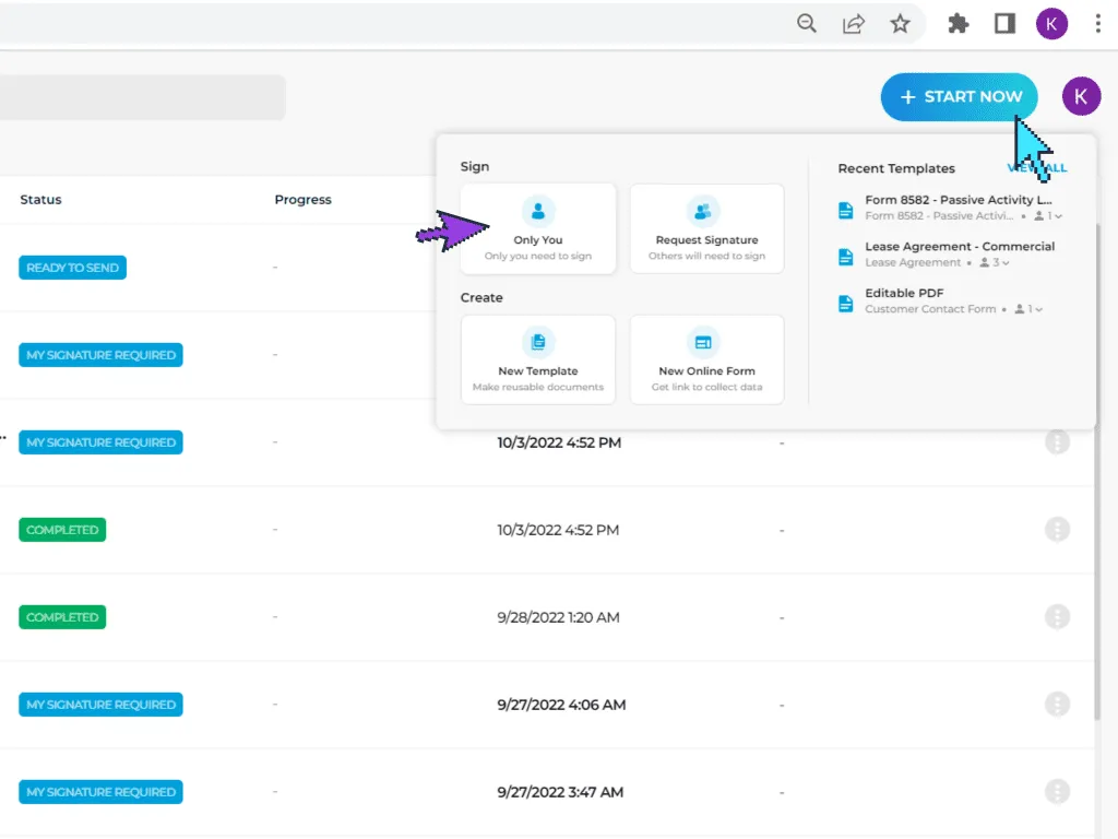 3. Select Only You if you are the only one who needs to sign the document. Choose Request Signature to request a signature from other signatories.