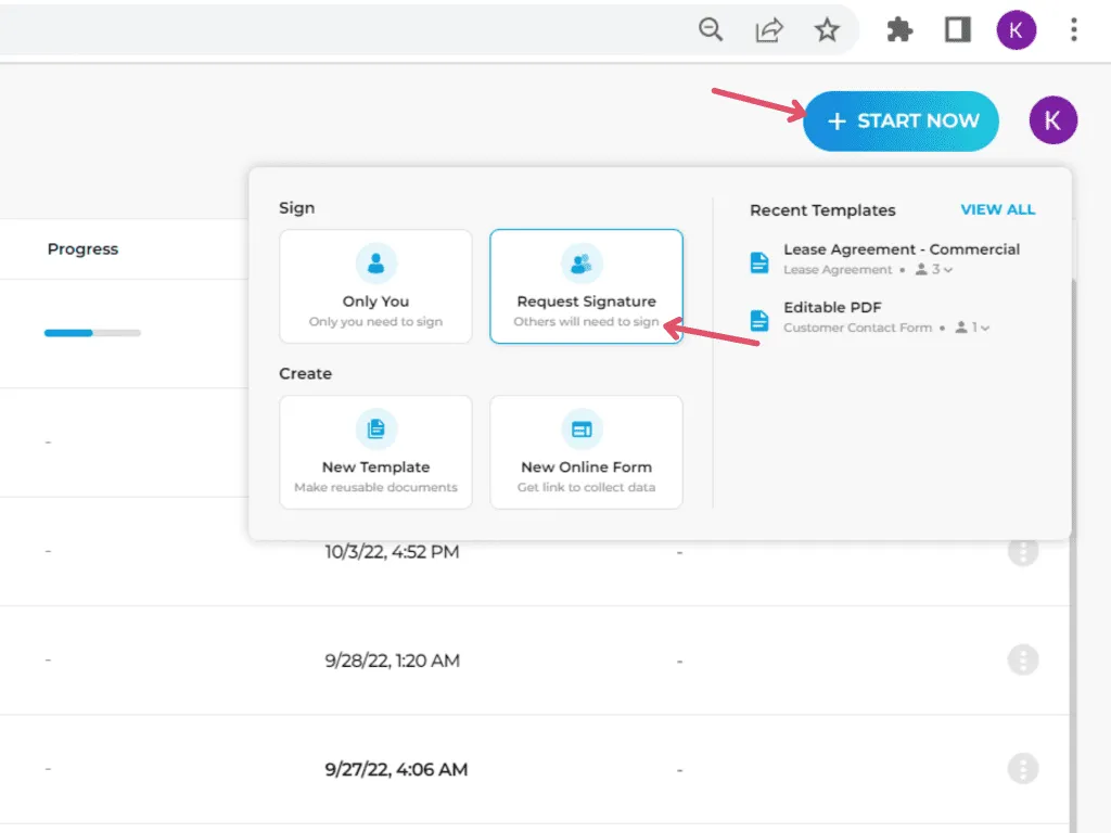 As the property owner, you'll have to be the first one to sign the document. After affixing your signature, our tool automatically sends the signature request to your tenant. You can track the status of your request in real time using your phone, tablet, or laptop.