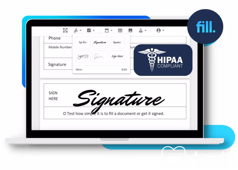 Signing electronic medical records requires a HIPAA-compliant electronic signature app like Fill. When an eSignature app meets esign compliance, you can minimize the risks of having your sensitive health information leaked without your knowledge or consent. You can also make anyone who discloses your information without your healthcare signature legally liable and have them face the consequences of doing so.